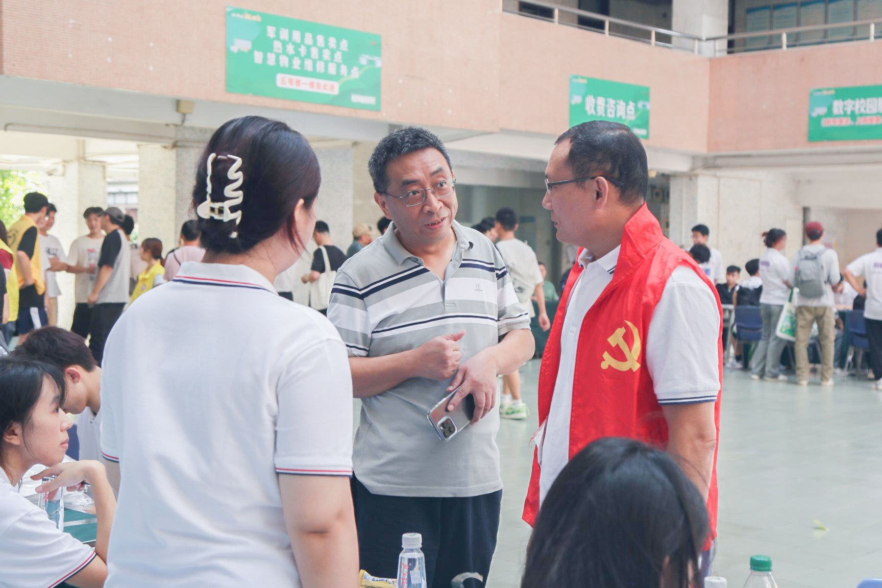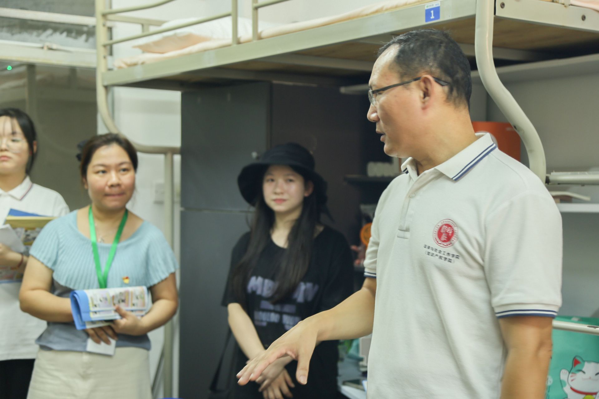 傍晚时分,公司领导、辅导员、班主任和助班们一同来到社区,走进宿舍,与新生面对面交流,对新生的到来表示热烈欢迎,关心新生对新环境的适应情况,倾听新生对老员工涯的规划等。