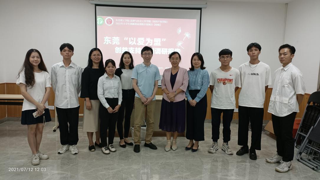 为有效促进专业课程与实践课程(项目化课程)的深度融合,探索新文科背景下英国上市官网365实践育人体系,推进公司“三全育人”综合改革试点工作,7月12日公司副经理朱晓红、党曦博士、张子庄老师和6名大创项目员工团队在东莞市莞香花青少年服务中心参加了由东莞市民政局、东莞南城街道“两新”组织党委指导,东莞市社会工作协会、东莞市微笑爱心慈善基金会及盟大集团联合主办的“以爱为盟 我心向党——我为群众办实事”主题党日活动暨第四期“以爱为盟·微笑公益”创益支持计划终评活动。
