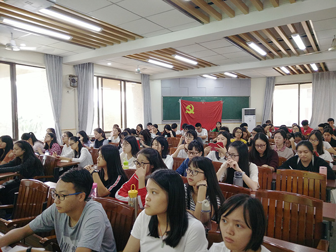 本次培训课的主题是组织发展中的常见问题。在本节课上潘荣新书记将内容分为八大块,逻辑清晰地为同学们介绍了组织发展中常见的问题。为了达到更好的课堂效果,潘荣新书记在介绍的同时还引用了大量的事例让同学们理解党的性质、党的纪律、党员的义务与权利以及入党的注意事项。这次课堂的氛围十分活跃,同学们都非常认真地听课。