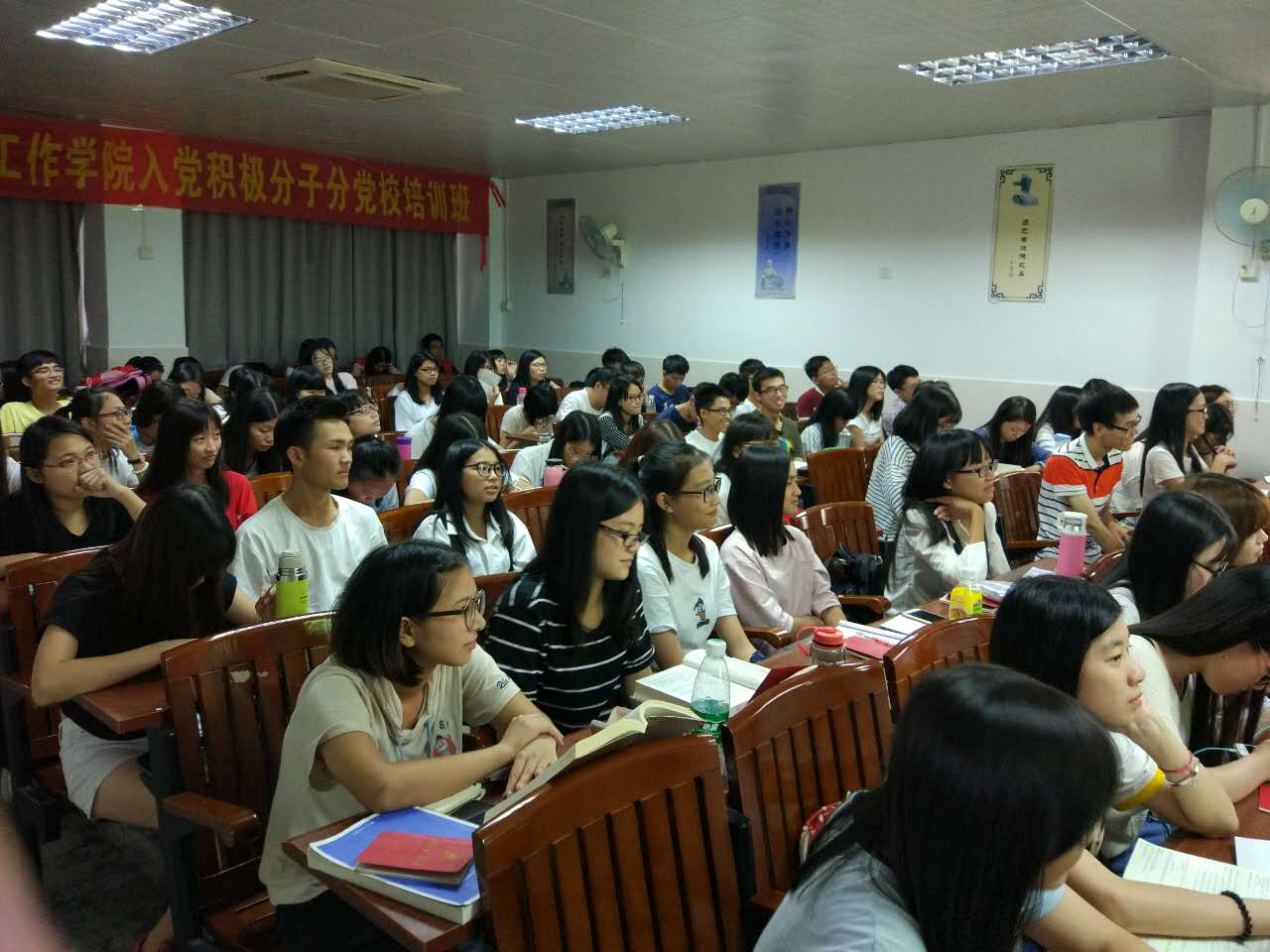 本次培训课主题是党章学习与发展中常见的问题。潘书记以亲近幽默的方式授课让同学们学习到党章的知识,并了解到在党员发展中常见的问题。课堂气氛十分活跃。