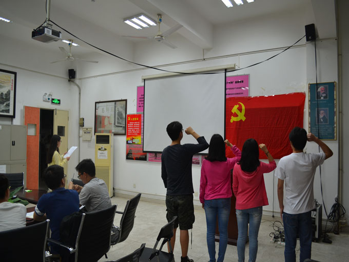 4月21日晚上7点30分,政法公司法学员工党支部大会在松山湖校区经管楼211召开。本次会议主要内容是讨论接收预备党员及预备党员转正的问题。法学员工支部书记邱可荣老师,6名党员,9名预备党员以及4名发展对象参加了本次大会。