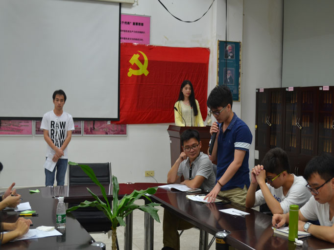大会首先讨论了袁文利、吴裕鸣等4名发展对象的入党事宜,发展对象及其入党介绍人做了情况汇报,与会正式党员举手表决;大会的第二项讨论了预备党员廖梓枫、林志娟等4名同志的转正事宜,预备党员及其培养人分别作了发言,与会党员讨论提问,正式党员举手表决,本次会议最终结果将提交校组织部审核并进行公示。接着大会法学员工支部书记邱可荣老师发言,对与会的党员表示衷心地感谢,对发展对象和转正预备党员的人数之少说明了原因,表示还有很多发展对象和预备党员还在被考察中。邱老师希望各位党员能将支部大会当成一个普通的交流大会,不要过于拘谨,鼓励大家充分表达自己内心的想法。然后,大家纷纷各抒己见,有人说入党介绍人与发展对象应是互相学习的关系,并不存在培养这一说法;有人说身为一名预备党员,今后应在实践中锻炼、提高、完善自我,而不应该约束在理论中。大家有说有笑的,会议气氛十分融洽。