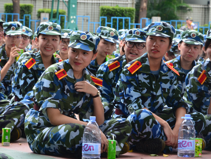 下午三点,全体干部忙着搬着一箱箱的清凉饮料向政法公司新生的军训场地走去。烈日下,新生们汗如雨下,耳边不断响起铿锵有力的踏步声和洪亮的口号声,看到他们紧绷的脸容与挺直的身姿,感受到新生们的朝气蓬勃。新生们保持着高昂的训练士气,操场上处处都是紧张的军训气氛。