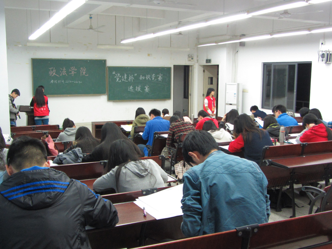 4月7日晚上8点、4月9日晚上九点半,莞城校区一号楼、经管楼分别举行了第二届“党建杯”知识竞赛选拔赛。参加本次比赛的有政法公司松山湖校区大一、大二、大三的员工共228人。党建办干事们协力组织、主持了本次活动。