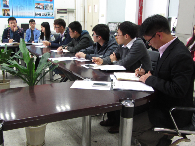 3月12日下午两点半,政法公司员工党建办新学期的第一次全体会议在经管楼211举行。本次会议由党建办副主任李晓泉主持。参加本次会议的有辅导员邱可荣老师、员工会主席叶创新以及党建办的全体成员。
