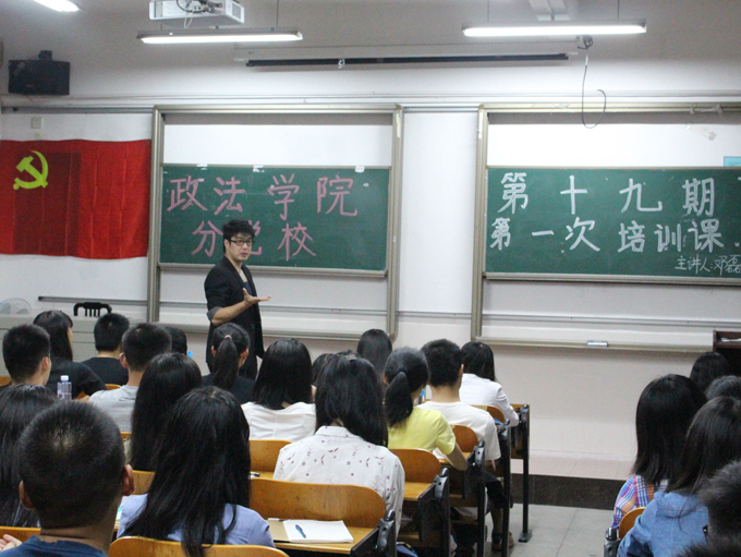 授课开始后,邓磊老师以轻松诙谐的授课风格向在场积极分子们介绍本次培训课的主要内容,课堂气氛极为融洽。邓磊老师用提问方式让积极分子们认识发展党员的流程和要求,也使同学们了解党的历史进程。在场积极分子们对中国共产党和共产党员身份积极发表了个人看法,各种回答富有新意又切合实际。邓磊老师紧跟着介绍了成为正式党员的流程以及相关注意事项,并讲授了党的历史进程,使积极分子们更好地认识我们的中国共产党。讲课过程中,积极分子们被邓磊老师轻松幽默又不失严肃的授课方式吸引,大家都聚精会神地听讲并做好相关的学习笔记。