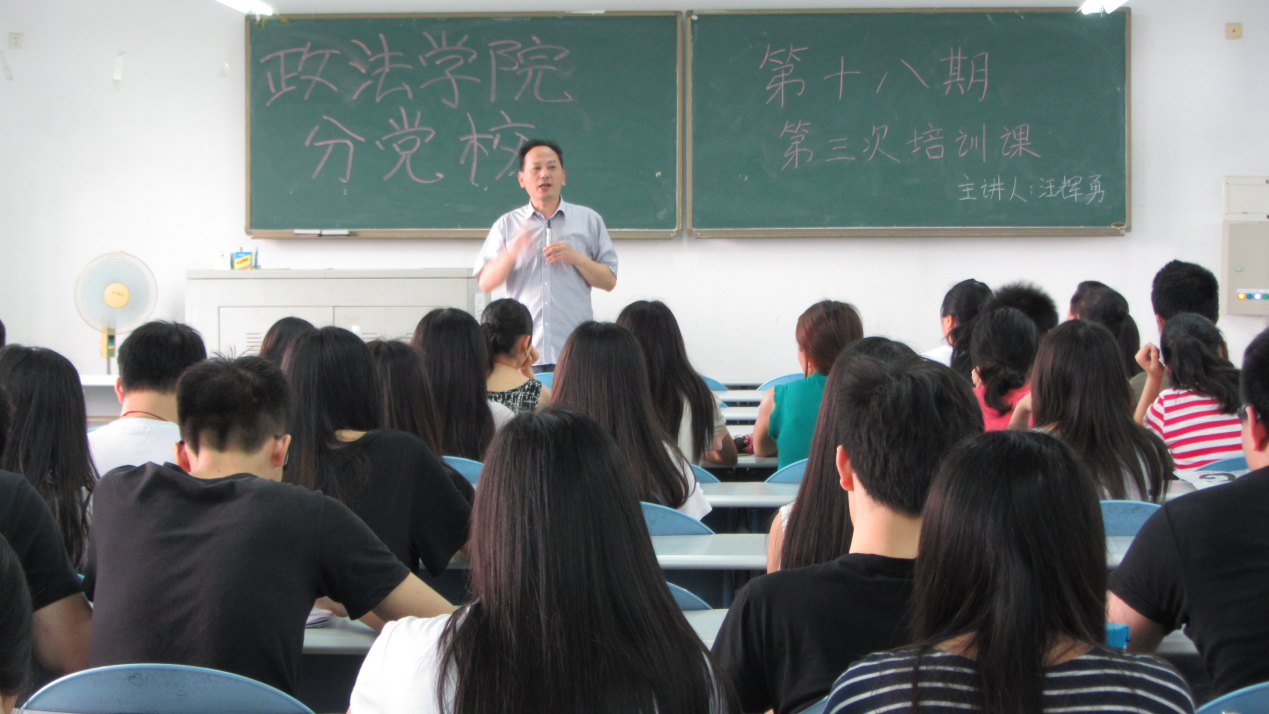 2014年5月22日下午,政法公司于教学楼6D404迎来了第十八期入党积极分子分党校培训的最后一节课,公司党总支纪检委员汪辉勇教授担任主讲人。