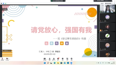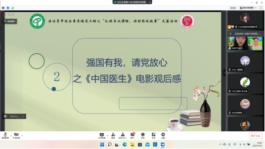 李佳琳同学在观看电影《中国医生》后,带领同学们回顾了电影描述的疫情下发生的一件件感人的事迹,对在疫情之下默默付出守护着我们的人表示感恩之情,呼吁倡导青年一代们可以敢于担当、乐于奉献,积极承担社会责任,提高自身素质,最终不负祖国期待,不负青春韶华。