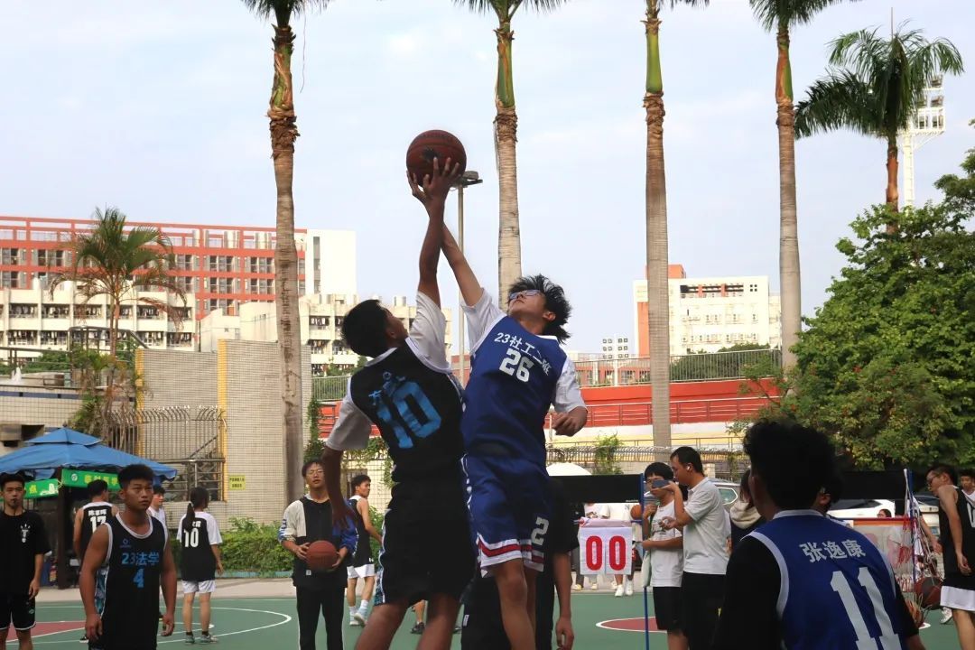 三步上篮,带球过人,在脚法与喝彩中,比分一点一点拉大。弹跳、脚步、速度、力量,平时训练的内容,在这一刻化为场上的表现,变作记分牌的分数。心态、战术,决定着队伍的调性;友谊、团结,绽放着合作的美丽。各支球队风格也在比赛中尽显,有的队伍强调防守,锲而不舍,紧紧咬住比分;有的队伍注重节奏,快发快攻,争取尽早拉开差距。