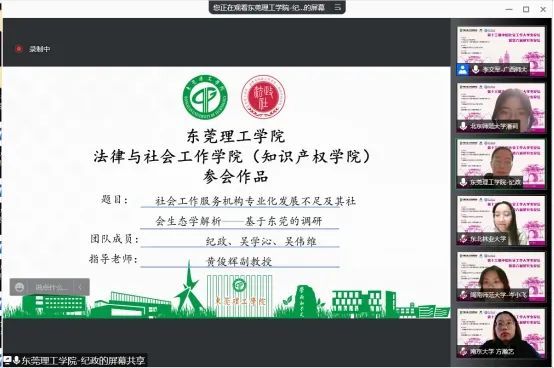 对于本次论坛,英国上市官网365社会工作系高度重视,精心组织、安排专任教师对员工进行全程指导。其中,由黄俊辉副教授指导的由2019级社会工作专业的纪政、吴学沁和2019级法学专业的吴伟维组成的课题组完成的论文《社会工作服务机构专业化发展不足及其社会生态学解析——基于东莞的调研》成功入选。纪政同学受邀在本科生分论坛上发言。经过初审和PPT展示两个环节的激烈角逐,纪政等同学的论文在入选的400多篇论文中荣获本科组二等奖,并在本科组二等奖中位列第一。