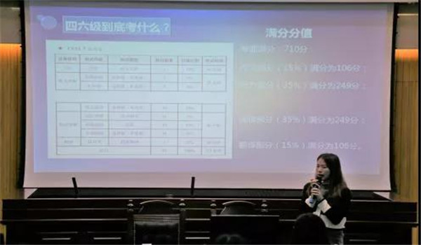 叶紫璇同学从答题技巧、备考准备两个方面为同学们分享听力、阅读、写作翻译的经验,不仅让同学们知道如何应对英语四六级考试,更了解到如何将备考融入到日常的英语学习中去。叶紫璇同学还向大家分享自己备考用到的书籍资料以及日常英语学习可以用到学习软件和小程序。叶紫璇同学表示日常积累固然重要,好的答题方法也一样可以帮助大家顺利通过四六级考试,在考试中考生可以从分值、难易度等方面来考虑作答先后顺序,从而提高答题效率及准确度。