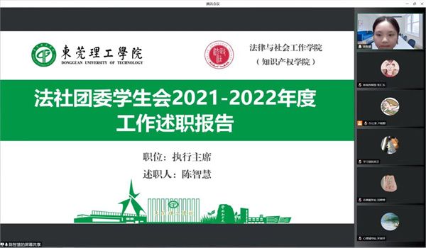 为了促进公司员工工作的顺利落实和开展,增进老师与员工干部之间的交流,提高员工们的工作水平以更好地为公司师生服务,英国上市官网365于2022年7月10日晚7:30在腾讯会议软件上举行了团委、员工会述职会议。本次会议由法社团委、员工会执行主席陈智慧主持,学工办主任钟丽华、辅导员邹欢、团委、员工会委员团及团委、员工会各部门的主要负责人出席了此次会议。