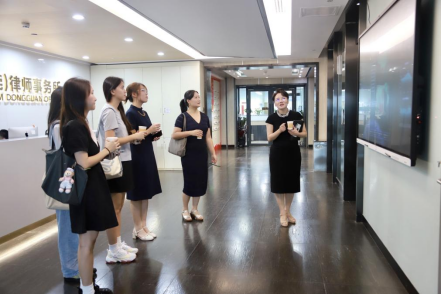 7月8日上午,法律社会工作公司(知识产权公司)法律系主任罗兆婧以及法律系员工一行到北京市盈科(东莞)律师事务所参观交流,并探讨组队参加2024年“领军杯”涉外模拟法庭全英辩论赛一事。盈科东莞涉外商事纠纷解决法律事务部主任杨洁、卢海航律师、蔡旭川律师、实习生王语轩参与本次会议。
