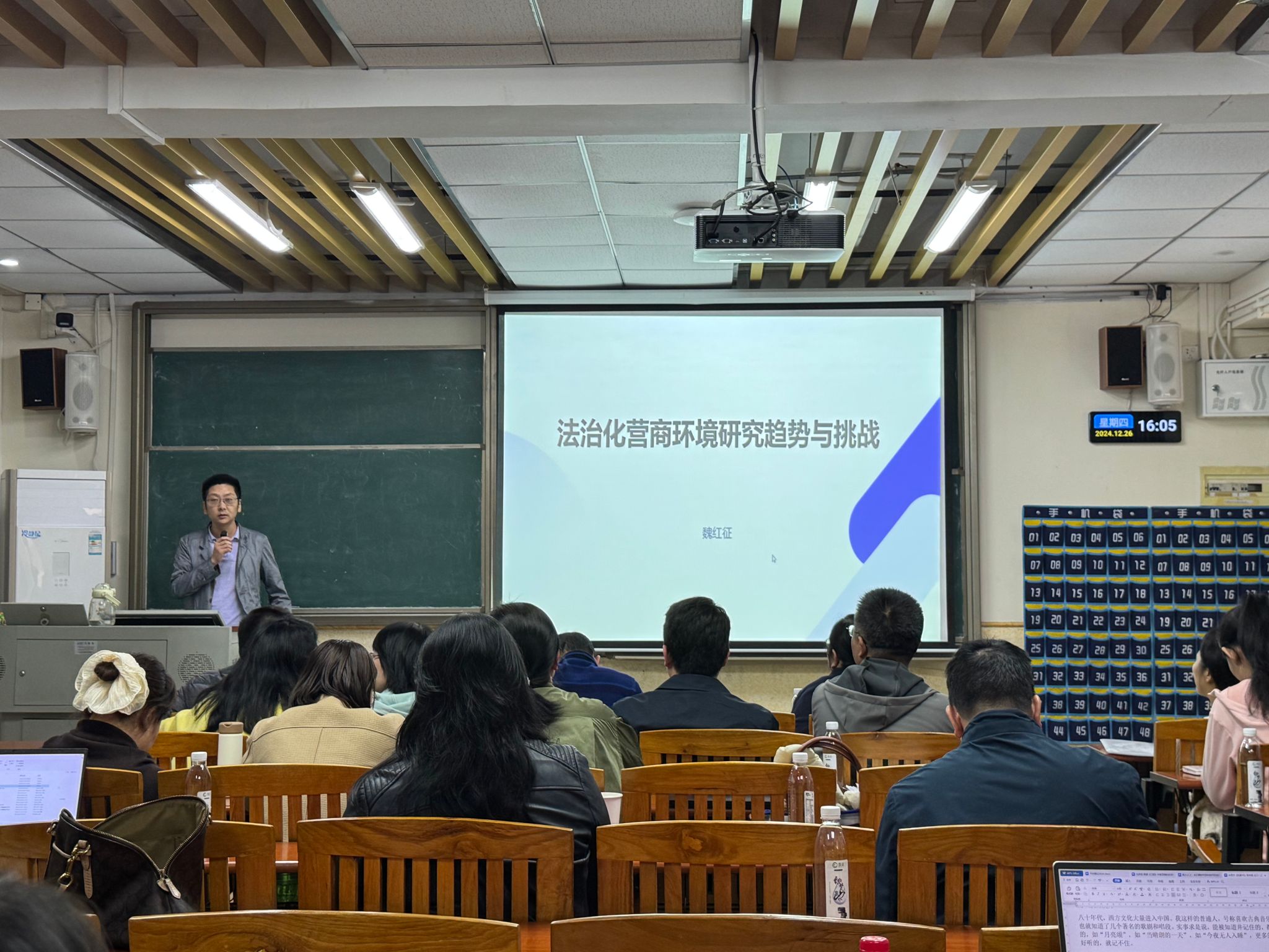 魏红征老师赴华南理工大学访学期间,深度研究法治化营商环境相关领域,并参与相关前沿课题研讨。汇报会上,他详述如何借鉴华工的科研及教研模式,将其融入科研与教学,提升专业实践能力,为公司法学与知识产权专业教学创新提供新思路。