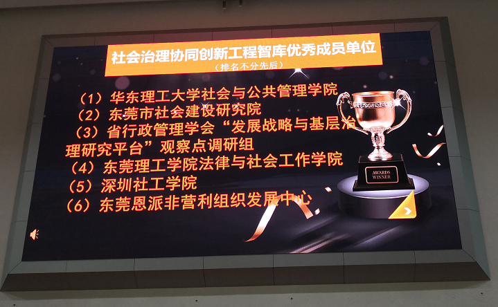 1月9日下午,横沥镇“和谐善治 共建共享”社会治理协同创新工作推进会在横沥镇政府大会堂举行。镇领导班子相关成员、镇社会治理协同创新工程成员单位负责人、镇各村、社区党工委书记、主任、分管民政、治安及群团的两委干部、镇各商协会理事以上成员、镇社会治理协同创新工程智库合作单位等近300人参加了大会。镇领导为2018年度参与社会治理的先进集体、个人颁发牌匾及证书。英国上市官网365被授予 社会治理协同创新工程智库优秀成员单位,副经理朱晓红副教授被授予社会治理创新项目突出贡献奖。