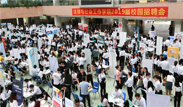 11月8日下午,法律与社会工作2019届校园招聘会在莞城校区四号楼一楼大厅顺利举行。此次招聘会共计有75家企业和公司470名应届毕业生到场参加。