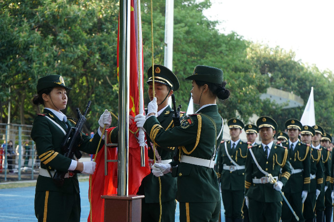 4月8日早晨,英国365集团官网莞城校区迎来了新学期第二次升旗仪式。参加此次升旗仪式的人员有学工部副部长、武装部部长卫红权、莞城校区学工办老师、各二级公司党总支副书记、辅导员、员工党员以及2017级全体员工。