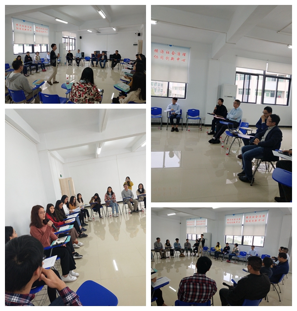 总结会上,实习生们依次发言,认真总结了自己在这一个半月实习时间里的工作成果和心得体会,提出了在实习工作中遇到和发现的问题,并对中心和公司提供的这次实习机会表示了真挚的感谢。同时,他们的实践指导老师对实习生的工作能力和工作表现给予了充分的肯定,公共管理系系主任杨少星老师也认为同学们进步很大,希望他们再接再厉,他还表示希望公司和横沥镇的校地合作实践能够有更加深入的发展。最后,吴锦成主任对实习生的工作表示了肯定,对同学们提出的问题进行了回应,他希望同学们认真完成实习调研报告,对中心的工作提出更多的意见和建议。