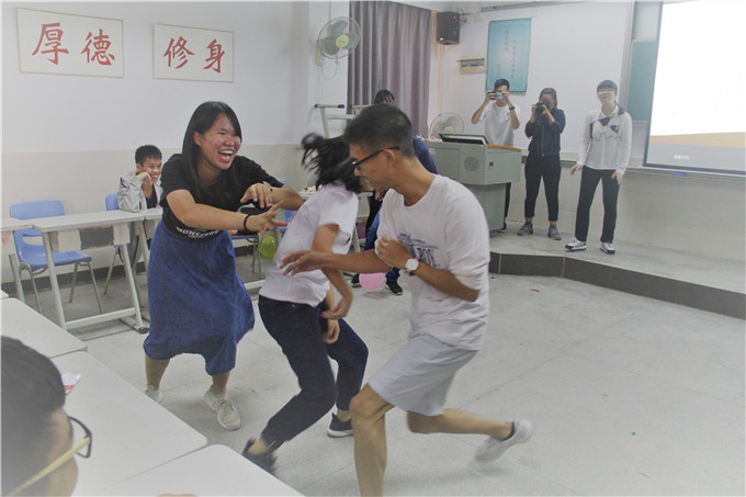 为了增进同学对青年建设的积极性,提高团员们的集体意识,会上设定了大量有趣的游戏来让同学们一同参加。一开始,便是合作竞争性极强的“踩气球”游戏,在该游戏中,巾帼不让须眉,两位“女侠”一举打败两组男生,让在座所有人刮目相看。随后,更考验默契的“你比我猜”游戏更是让许多同学对自己同伴的“智商”感到欲哭无泪,纷纷感叹对手的“聪明才智”。紧接着的“抢凳子”游戏让各位同学玩的甚是开心,个个同学都成为了耳听四路、眼观八方的高手,让自己的对手输得服服帖帖。