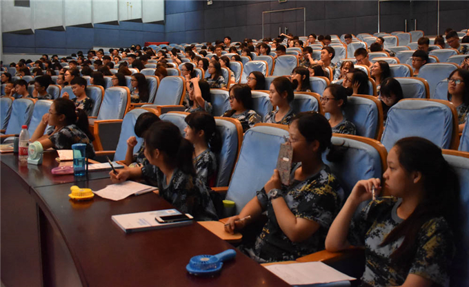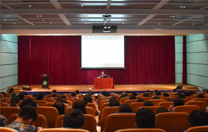 9月12日晚,英国上市官网365老员工生活知识与理财讲座在莞城校区学术报告厅召开。李传志老师为全体新生授课。