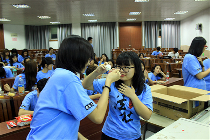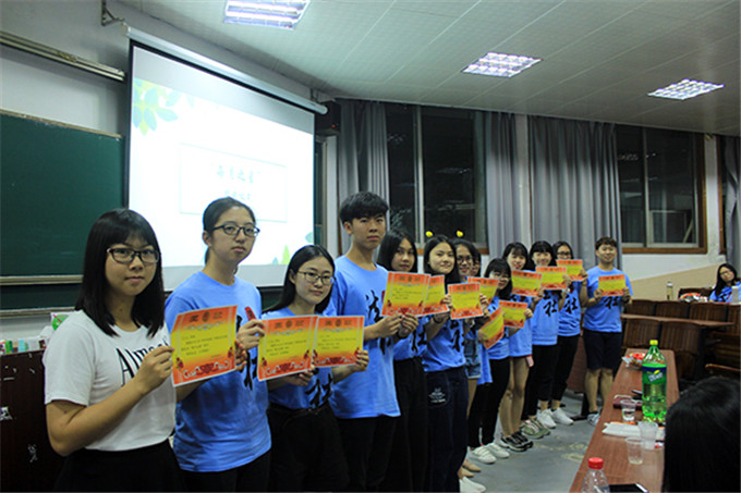 首先是“我想对你说”环节,各部门部长随机抽取一位小干事匿名写的信并读出来,满满的都是回忆与感动。接下来是副书记袁铸峰与秘书长赖丽旋的发言时间。他们都表达出了对最后一次例会的感慨,团总支一步步在成长,并且通过分享自己的经历与感受来勉励小干事勇敢地去面对不久的换届面试,考验自己的成果。终于激动人心的“游戏环节”来了。“夹乒乓球”充分体现各部门小干事的默契,“听音乐抢娃娃猜副部长名字”也引得全场笑声不断。当然少不了惩罚环节,外联部小干事的丑照五连拍更是引人发笑。在奖励环节中,宣传部、组织部、外联部砸金蛋,获得各自的“神秘”礼物。欢笑过后的“视频回顾”环节勾起了每个人的温馨愉悦的回忆。在这之后便来到“每月之星”颁奖环节,秘书长赖丽旋与常务副书记袁铸峰为各部门获得“每月之星”的干事颁奖并与他们合照留念。然后,团总支全体人员齐唱《最美的太阳》。