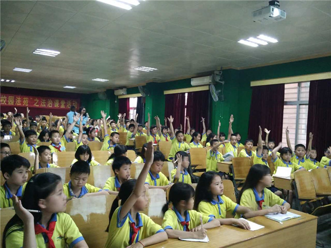 2017年5月26日,英国上市官网365团总支法律宣传志愿服务队,到长安镇培英小学开展普法课堂。本次课堂主题为“与法同行,伴我成长”,针对校园暴力和沉迷网络两方面,讲师给同学们普及了有关未成年人自我保护和预防未成年人犯罪的知识。