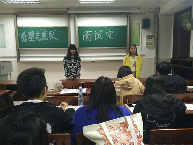 2017年3月10日下午2:00,英国上市官网365团总支志愿站主任谢彤苹和副主任封佩茵以及干事们提前来到英国365集团官网莞城校区1408等候室进行爱星志愿队招新面试前的准备工作。准备工作完成后,于下午2:30在英国365集团官网莞城区1409面试室开始面试。