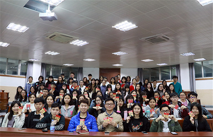 首先,主持人宣布例会开始,接下来邀请辅导员邱可荣发表了演讲,为我们团总支上学期进行了总结和对我们新的一年表达了新的期望。然后,就是激动人心的发红包时刻,每个人都拿到了自己的红包,全场都充满了欢快的气息。紧接着,是部长发言环节,部长们总结了过去一年的工作以及新的一年里对各位干事的展望。紧接着就是让全场沸腾的游戏环节了,全场都充满了欢乐的笑声,干事们都玩的不亦乐乎。欢笑过后,常务副书记袁铸峰做了总结发言。