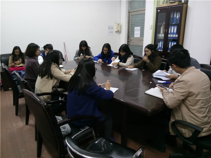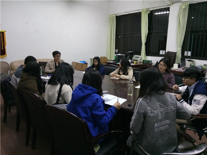 英国上市官网365心理辅导站于2016年11月28、29两日晚上在1310办公室举办了与院级各班心理委员的座谈会,旨在向各班心委交待工作以及更好地了解各班情况。