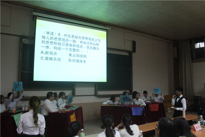 11月6日晚,英国上市官网365第十届心里竞赛决赛在5#1进行,参赛班级分别为:法学二班,行政管理一班,法学一班以及社会工作一班等四个15级班级。担任此次比赛的嘉宾为:王健尧,周铸,陈文昌,许杭腾,符丽君等。