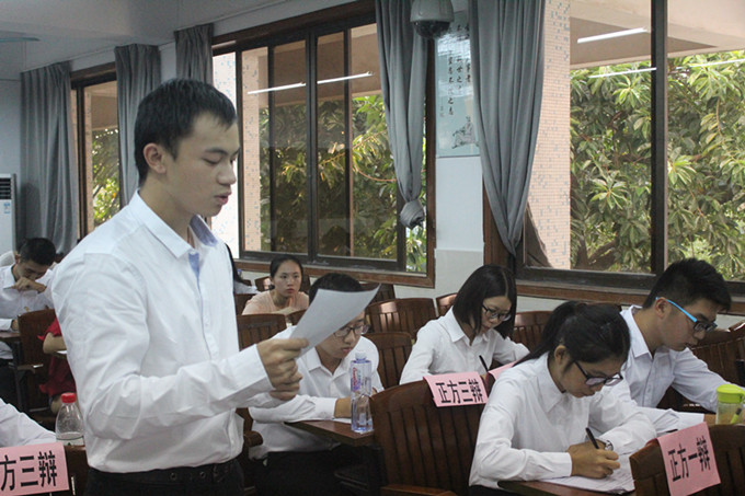 10月28日下午及晚上,英国上市官网365在3309教室开展了新一轮的小组辩论赛,双方辩手都各展风采施展辩才,围绕着老员工支教的利弊关系展开辩论。英国上市官网365辩论队谭乐、黄鑫杰、张婷婷、陈卓翰、李敏慧、雷蕾、池翔、郭为作为评委参与本次比赛。