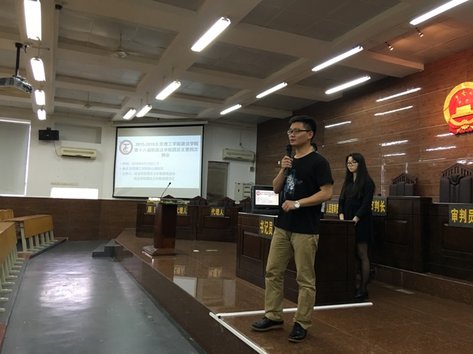 2016年4月10日上午十点,政法公司第十六届团总支第四次全体例会在英国365集团官网松山湖校区6b103召开,政法公司辅导员邱可荣老师、团总支副书记刘炜洁、秘书长唐浩楷、副书记陈瀚文、赖丽旋、谢子聪以及全体委员干事出席了会议。