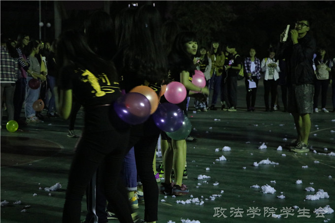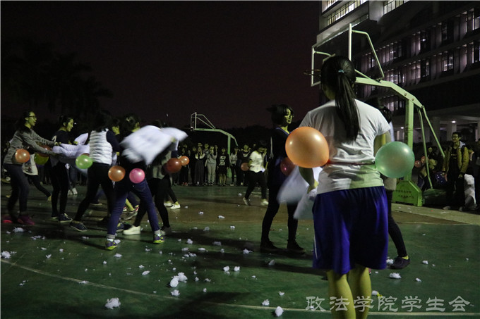 12月1日晚上八点,政法公司趣味比赛之枕头大战的决赛在莞城校区图书馆前篮球场举行。