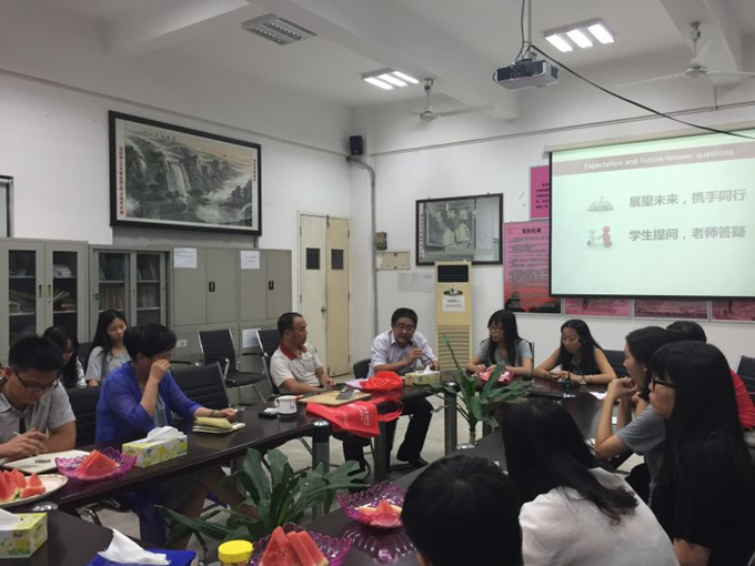 班会在两位班长的主持中拉开帷幕。首先是李益民老师对本次主题班会的举行目的做了明确的阐述,并与同学们一起分享西瓜,营造良好的活动氛围。接下的环节是同学们分享暑期实习与香港实习经历,其中欧阳婷婷和丘钰琳等多位同学与师生们讲述了她们的实习经历与体会,并表示自己在暑期实习中收获颇大,也得到了充分的锻炼,加深了对社会工作专业的了解。各位与会老师对同学们的成长纷纷表示欣慰,特别是成伟教授认为同学们在经过两年的专业学习及一个暑假的实习后,学习能力、语言表达能力、为人处世等方面都得到了很大的提高,并希望同学们能继续保持较大的工作激情走好社工这条路。此外,夏副经理也对社工班的同学给予了很大的肯定,并鼓励同学们多与公司其他专业的同学进行交流,把丰富的经验和优秀的精神传递给他人。