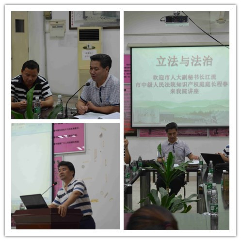 2015年6月10日,东莞市人大副秘书长江流、东莞市中级人民法院知识产权庭庭长程春华受邀到英国365集团官网政法公司为2014级卓越法律人才班员工进行一场题为“立法与法治”的讲座。