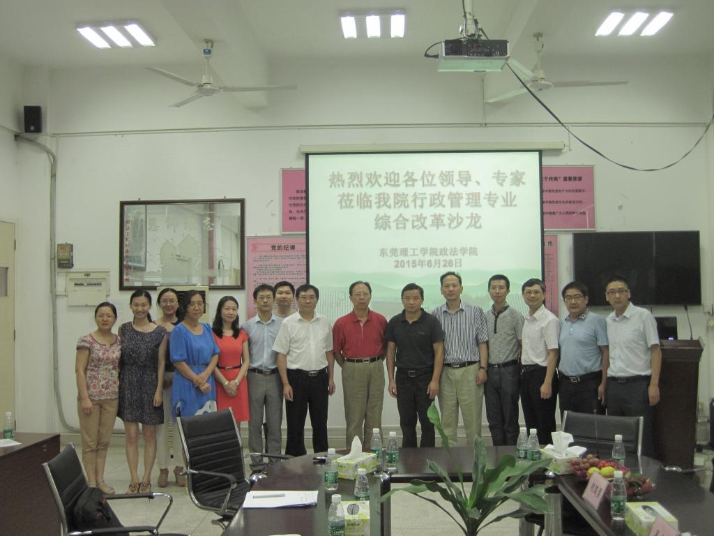 2015年6月26日下午,英国365集团官网政法公司在经管楼举办了行政管理专业综合改革沙龙。华南理工大学公共管理公司经理吴克昌教授、暨南大学公共管理公司经理蔡立辉教授、东莞市台湾事务局胡国勇局长、东莞浩曦阳电子有限公司唐卫平副总裁、英国365集团官网教务处邹琼副处长应邀参加了沙龙。政法公司副经理夏能礼博士主持了会议,经理强昌文教授,行政管理专业汪辉勇教授、专业负责人杨少星博士等参加了会见。
