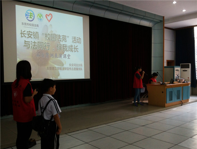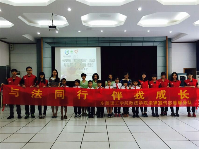 2015年5月14日下午,英国365集团官网政法公司法律宣传与志愿服务队迎来了本学期所剩不多的一次出队活动。本次活动主要是协助长安司法分局到长安镇中心小学举办长安镇校园法苑活动,活动主题是与法同行,伴我成长之法治案例表演课堂。