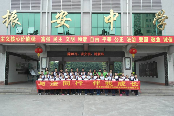 2015年3月26日下午,英国365集团官网政法公司法律宣传志愿服务队进行了3月份第二次的普法活动。队员们满怀热情地来到长安镇振安中学和实验小学开展法制教育课堂。