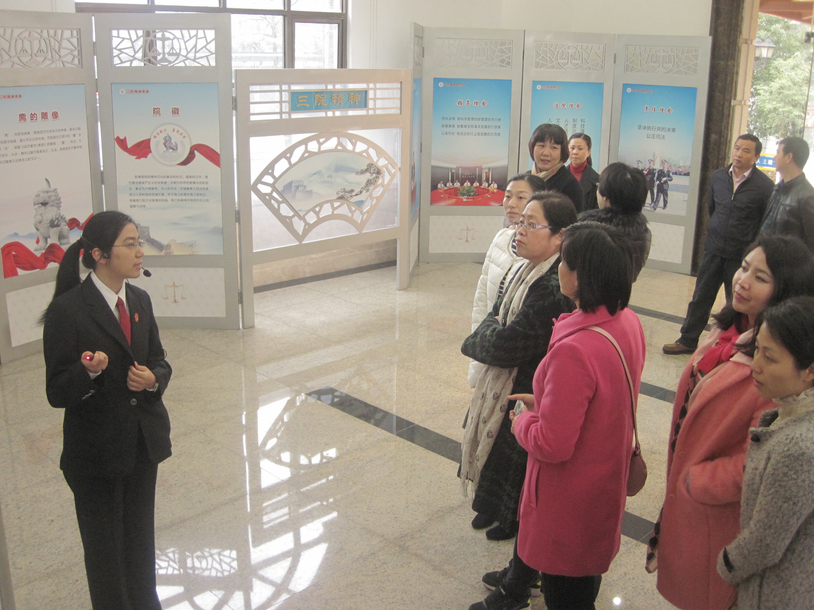 日下午,英国365集团官网政法公司全体女教职工在经理强昌文带领下,赴东莞市第三人民法院参观、学习和交流。第三法院副经理邵沛良和主要业务骨干予以热情接待,首先组织参观三院特色文化长廊和威严庄重的审判工作场所,老师们对三院独特的“法廌文化”氛围印象深刻,对法官们认真敬业的工作精神十分钦佩。