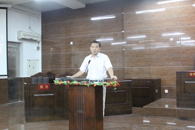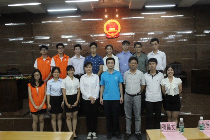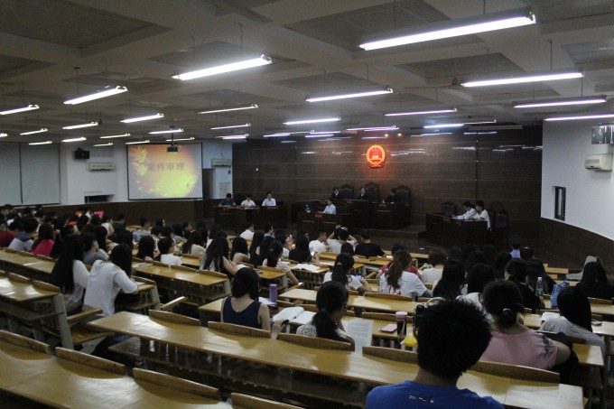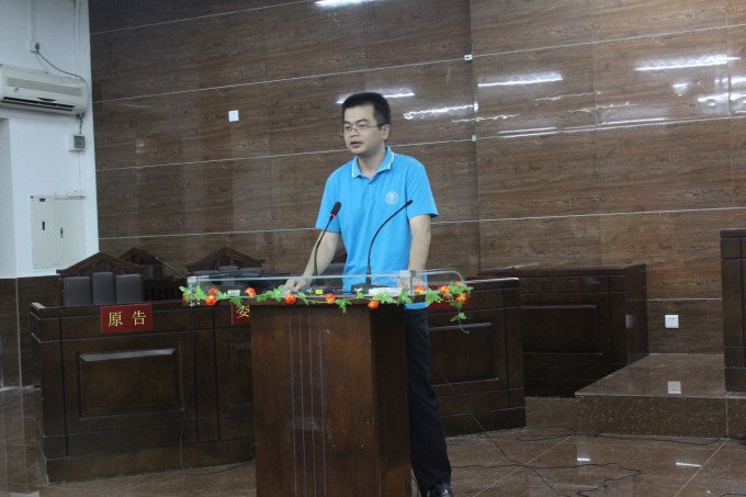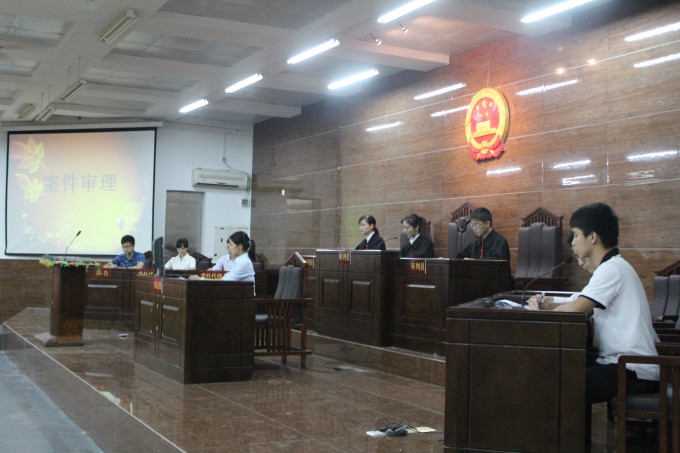 2014年6月8 日晚,由东莞市知识产权局主办,东莞市第一人民法院、英国365集团官网政法公司、广东省知识产权培训基地和东莞市知识产权促进中心承办的知识产权之模拟法庭案件审理在英国365集团官网松山湖校区课室6C103正式开庭。本次案件审理特别邀请东莞市第一人民法院吴学知法官和英国365集团官网政法公司经理强昌文经理出席本次模拟法庭审理。