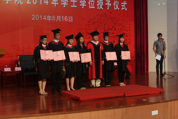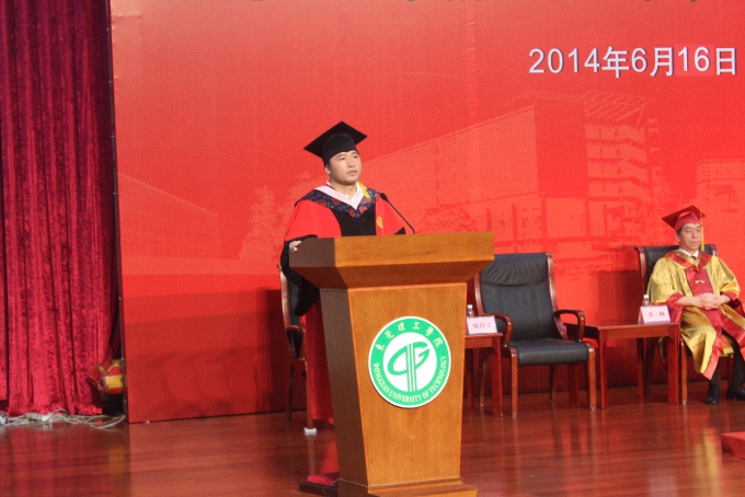 仪式由副经理邹琼主持,仪式一开始,政法公司经理强昌文作了热情的致辞。强经理指出,毕业季并不代表结束,政法学子在日后的生活应该继续学习,不断进步,为社会贡献自己的力量,最后强经理表达了对毕业学子的美好祝愿。接着,政法公司辅导员邓磊老师宣布政法公司2014年“优秀毕业生”的名单,强昌文为获奖者颁奖并合影留念。