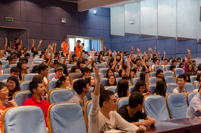 在庭审结束与宣判的间歇,现场进行了对于庭审内容的交流环节,进行有奖竞猜,并请同学们就之前庭审当中不解的问题向专业法官获取解答,而两位法官也针对同学们提出的问题进行了耐心的解答。