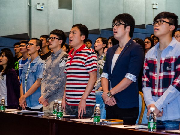 大会由政法公司员工会会歌《我相信》拉开帷幕,全体到场人员一起合唱,预热了全场的气氛,在此之后,进行每次例会的例行环节——每月之星的颁奖,表彰在上个阶段为部门及组织辛勤付出的干事们。