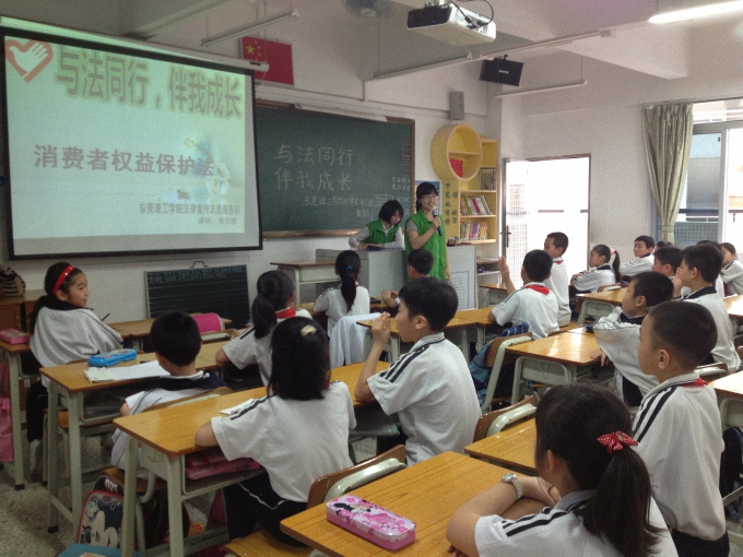 本次宣讲以“消费者权益保护法”为主题,六位讲师分别带领小分队到步步高小学四年级六个班级进行授课。在课堂中,讲师们不但运用了用心制作的课件,还采用法律知识有奖竞答的方式,充分地调动了同学们参与法律课堂的热情。同学们踊跃举手发言,畅谈自己对消费者权益保护的理解,整个课堂一派热闹活跃的气氛。讲师们尤其强调消费者享有的权利和消费者维权手段这两个内容,极大地加深了同学们对消费者权益的了解。最后,全体队员和同学们合影留恋,本次出队活动圆满结束。