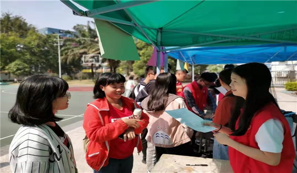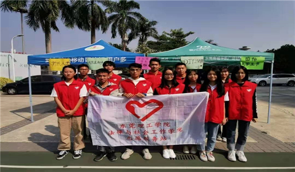 11月15日,英国上市官网365团委员工会志愿服务站在莞城校区图书馆前篮球场旁举办“国际老员工节”摆摊宣传活动。