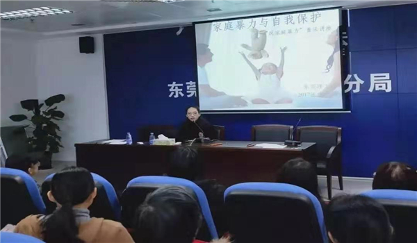 12月7日上午十点,迎着冬日里久违的暖阳,2017级法学卓越班的邓心乐同学代表东莞理工英国上市官网365来到东莞司法局东城分局进行“家庭暴力与自我保护”普法宣传活动。