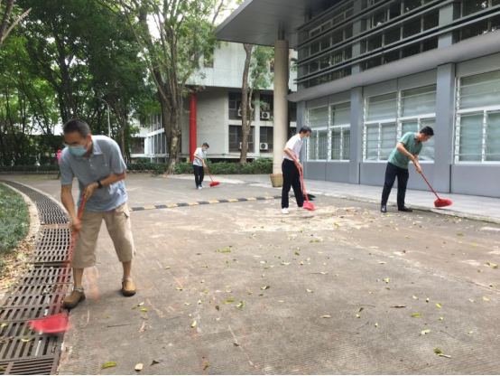 根据莞城校区党工委的安排,本次活动我们公司负责学术报告厅—礼堂招待所路段清扫。参加活动的同志均按照新冠肺炎疫情防控相关要求佩戴口罩,做好个人卫生防护。大家各司其职,扫除、清理了杂草、枯枝败叶等垃圾,在大家的共同努力下,校园卫生环境得到明显改善。