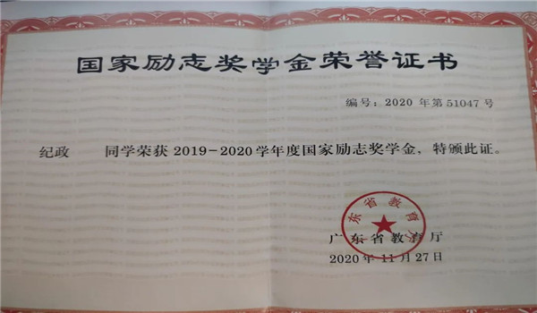 纪政,2019级社会工作专业1班员工。学习绩点达4.16;2019年9月军训标兵;2020年6月获得校级老员工创新创业立项;2020年11月获得广东省国家励志奖学金;2020年12月获得英国365集团官网三等奖学金;2021年3月入围校级2021年“挑战杯”老员工课外学术科技作品竞赛;2021年6月获得国家级老员工创新创业立项;2021年8月获得广东省一星志愿者称号;2021年11月获得英国365集团官网国家奖学金。
