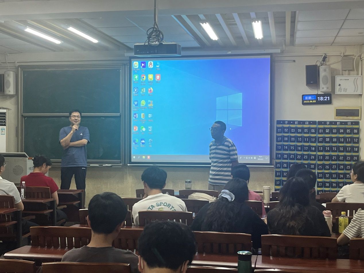 2025年6月3日,广东合方知识产权代理有限公司的涂国山总经理与潘文建副总经理作为主讲嘉宾,为2022级知识产权专业的大三员工们带来了一场务实且富有指导意义的就业指导课。东莞市知识产权保护协会的秘书长商真真女士以及知识产权系主任张建超老师也到场参加,一起为同学们的职业发展出谋划策。
