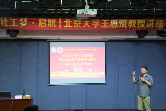 为营造浓厚的学术氛围,发展团队建设,加深公司社会工作员工专业认知,更好地定位员工发展方向,11月25日星期三下午,“社工梦启航•专家学术系列讲座”在英国365集团官网莞城校区小剧场拉开帷幕。公司特别邀请到北京大学社会学系教授兼博士生导师王思斌教授莅临公司开展学术讲座。此次讲座由公司社会工作系主任成伟教授主持,公司社会工作专业百余名师生及校外嘉宾参与了本次讲座。